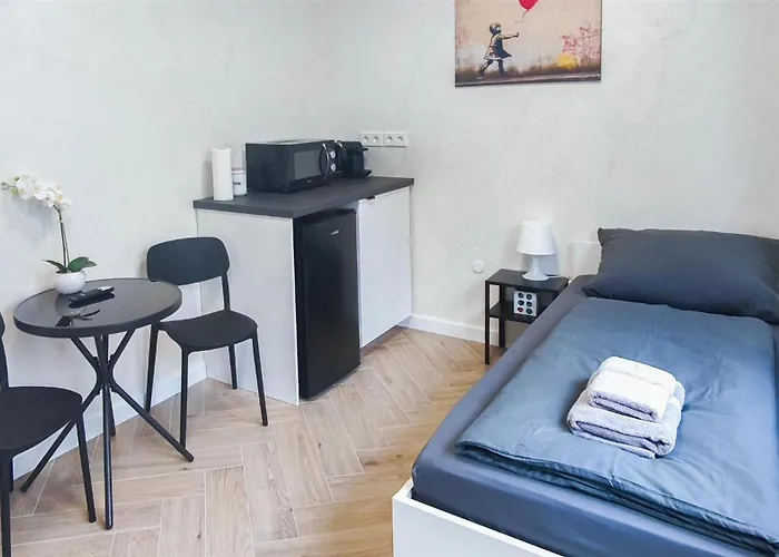 Alfa Stuttgart Einzelzimmer Teekueche Porsche Bosch L Gemeinschaftsbad Wifi Smarttv L Single Room With Kitchenette And Shared Bathroom Bs21A6 erbjuder ett delat kök, utrustat med ugn och diskmaskin. Busshållplatsen Zuffenhausen Rathaus är belägen mindre än 5 minuters promenad från den här lägenheten.